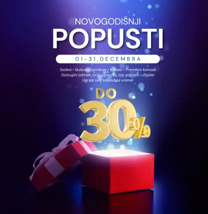 Iskoristite NOVOGODIŠNJU AKCIJU za opremanje doma od 01-31.12u svim salonima nameštaja.