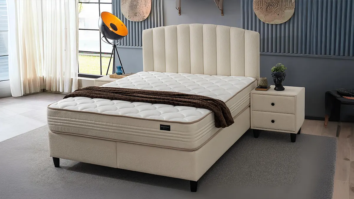 • Moderan boxspring krevet sa dekorativno prošivenim uzglavljem